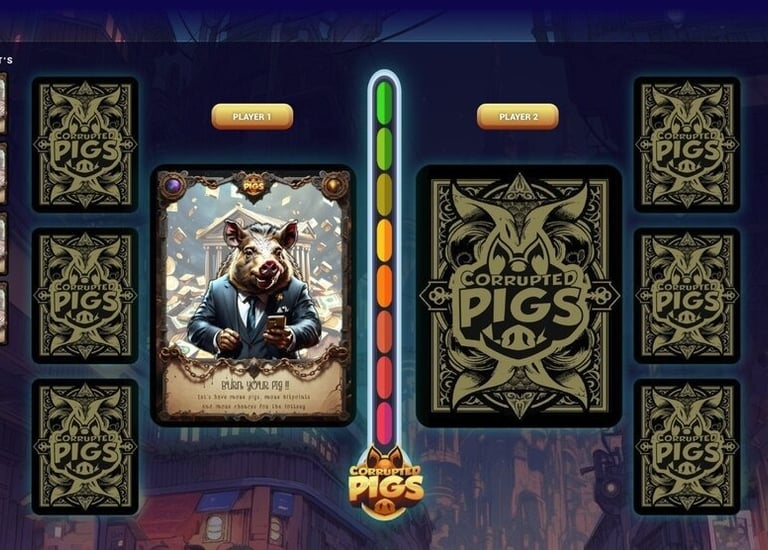 Satirical, thought-provoking NFT TCG that blends humor and social commentary, exploring the complexities of corruption in a world where pigs rule and humans reflect